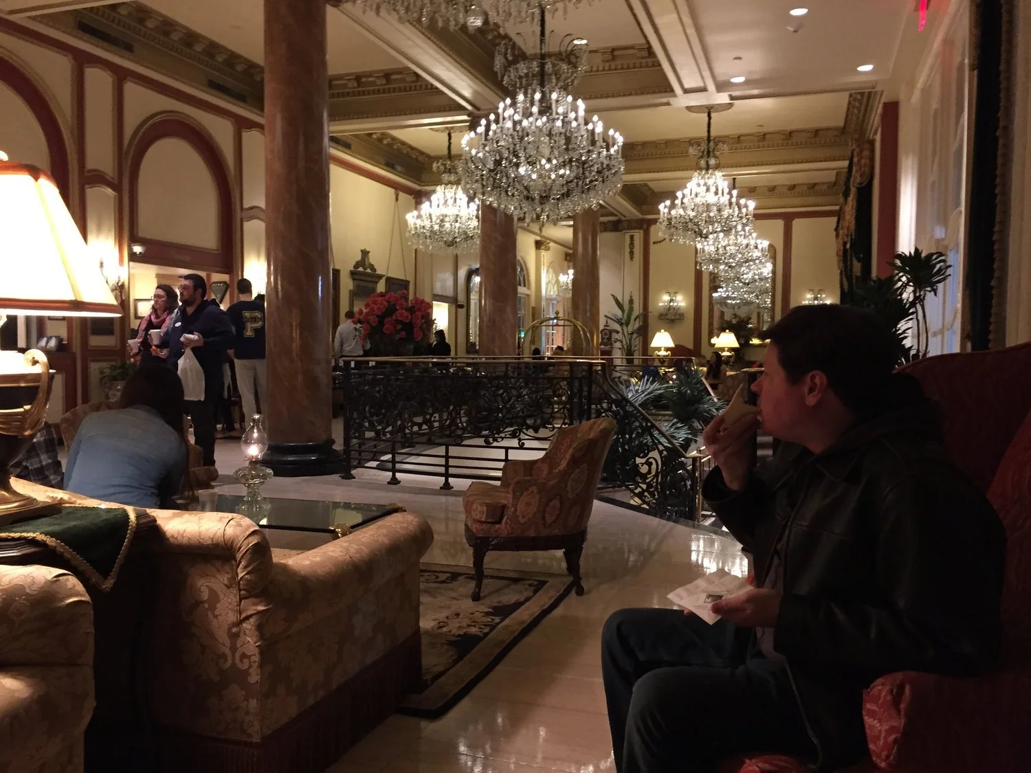 I stayed at Le Pavillon, an historic grand hotel a few blocks from the noise of Bourbon Street. Le Pavillon is a hotel with a tradition of peanut butter and jelly sandwiches served for guests at 10 o’clock nightly. What’s more, guests are invited to sit on the plush and ornate furniture of the beautiful lobby as if it’s our own personal living room. (I was to learn in the coming days that this is signature New Orleans style: a happy and open welcome.)